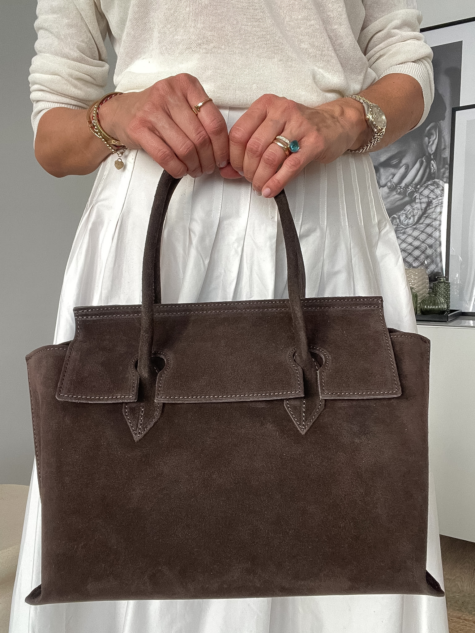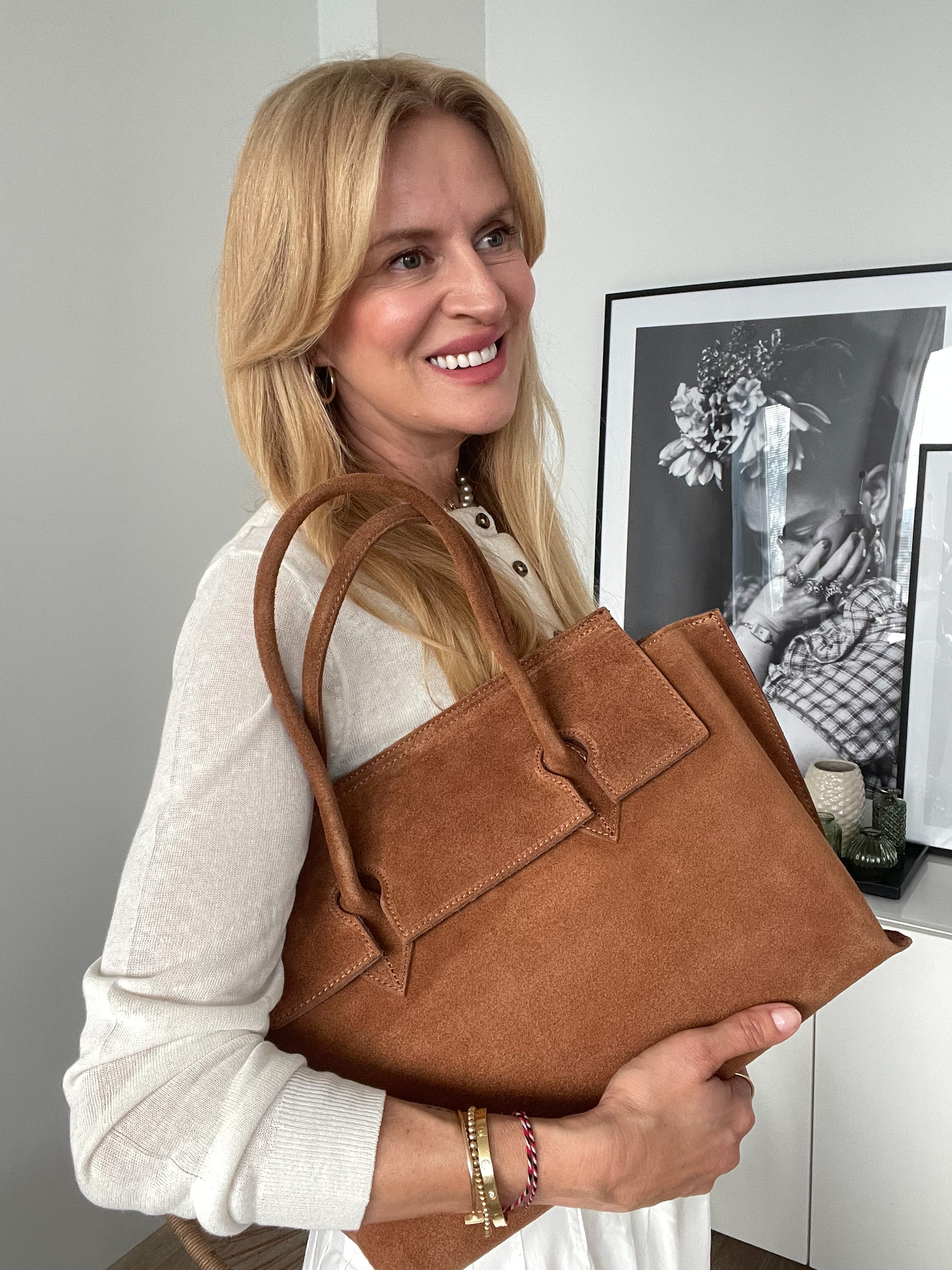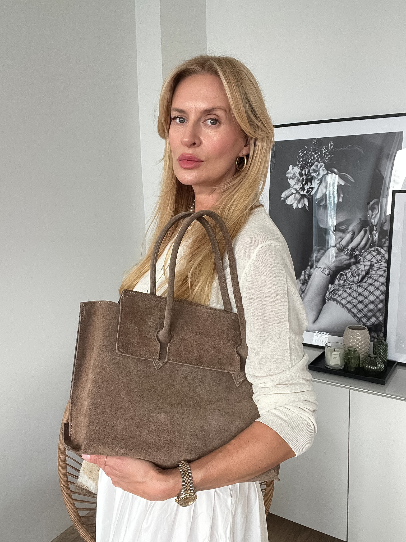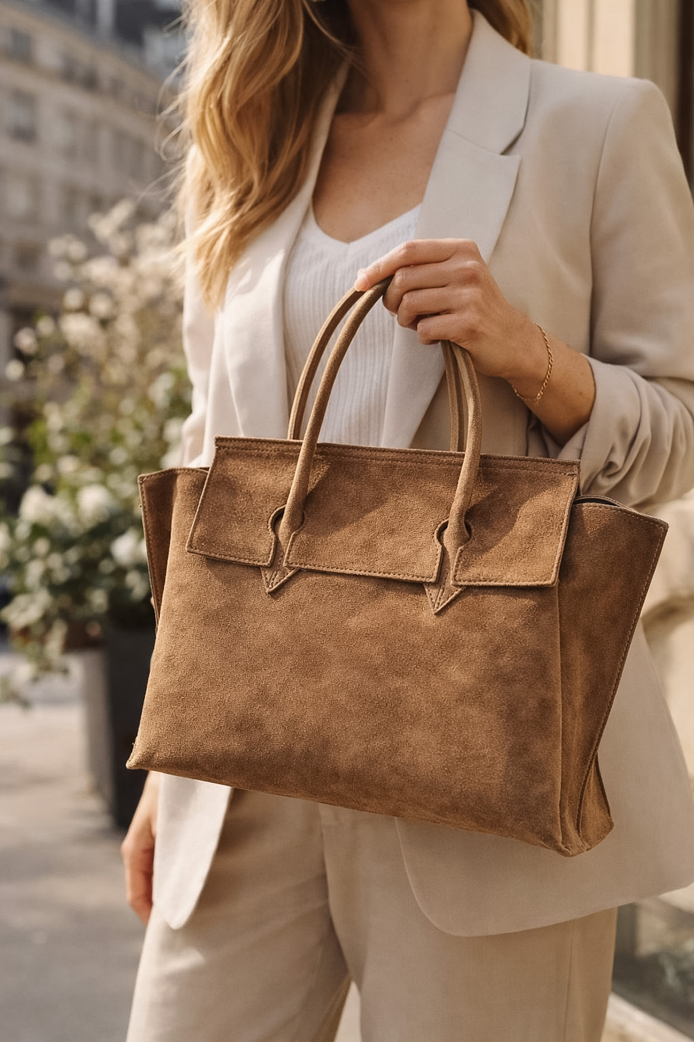 Kabelka ALLURE je nadčasová dámska kabelka, ktorá spája eleganciu a praktickosť. Minimalistický dizajn, pevné rúčky a priestranný interiér z nej robia ideálnu voľbu na každý deň – do práce aj do mesta. Nadčasové farby sa ľahko kombinujú s akýmkoľvek outfitom a dodá Tvojmu looku sofistikovaný nádych. Vyrobená je z kvalitnej pevnej semišovej kože, vďaka čomu krásne drží svoj tvar. Vo vnútri je prakticky riešená niekoľkými priehradkami, vďaka ktorým budeš mať v kabelke vždy poriadok. Kabelka má pod prednou chlopňou zapínanie na zips. Súčasťou kabelky je odopínateľný a nastaviteľný kožený popruh.
