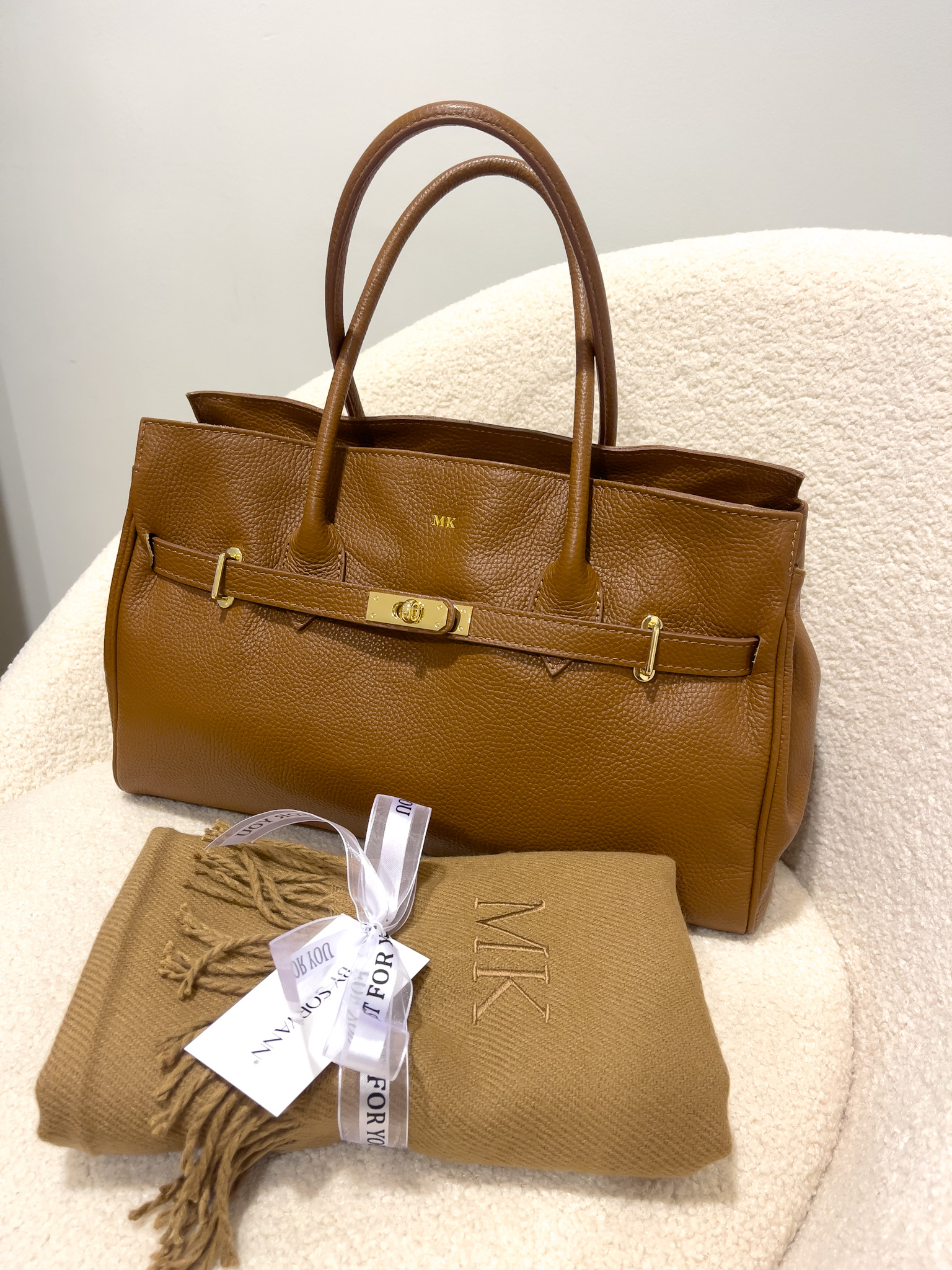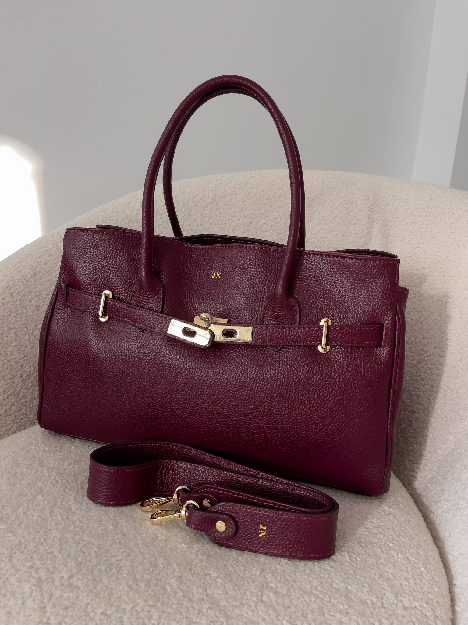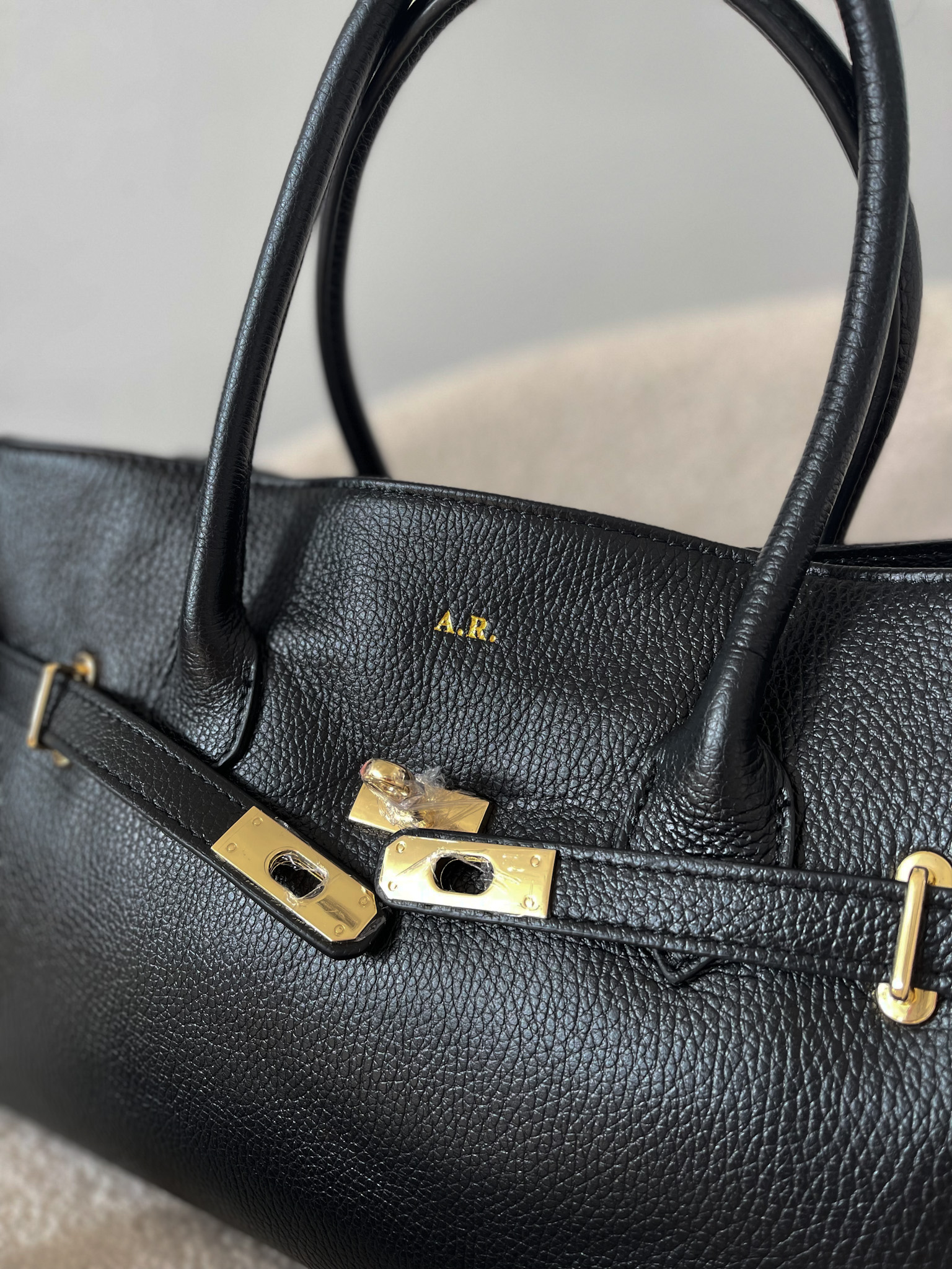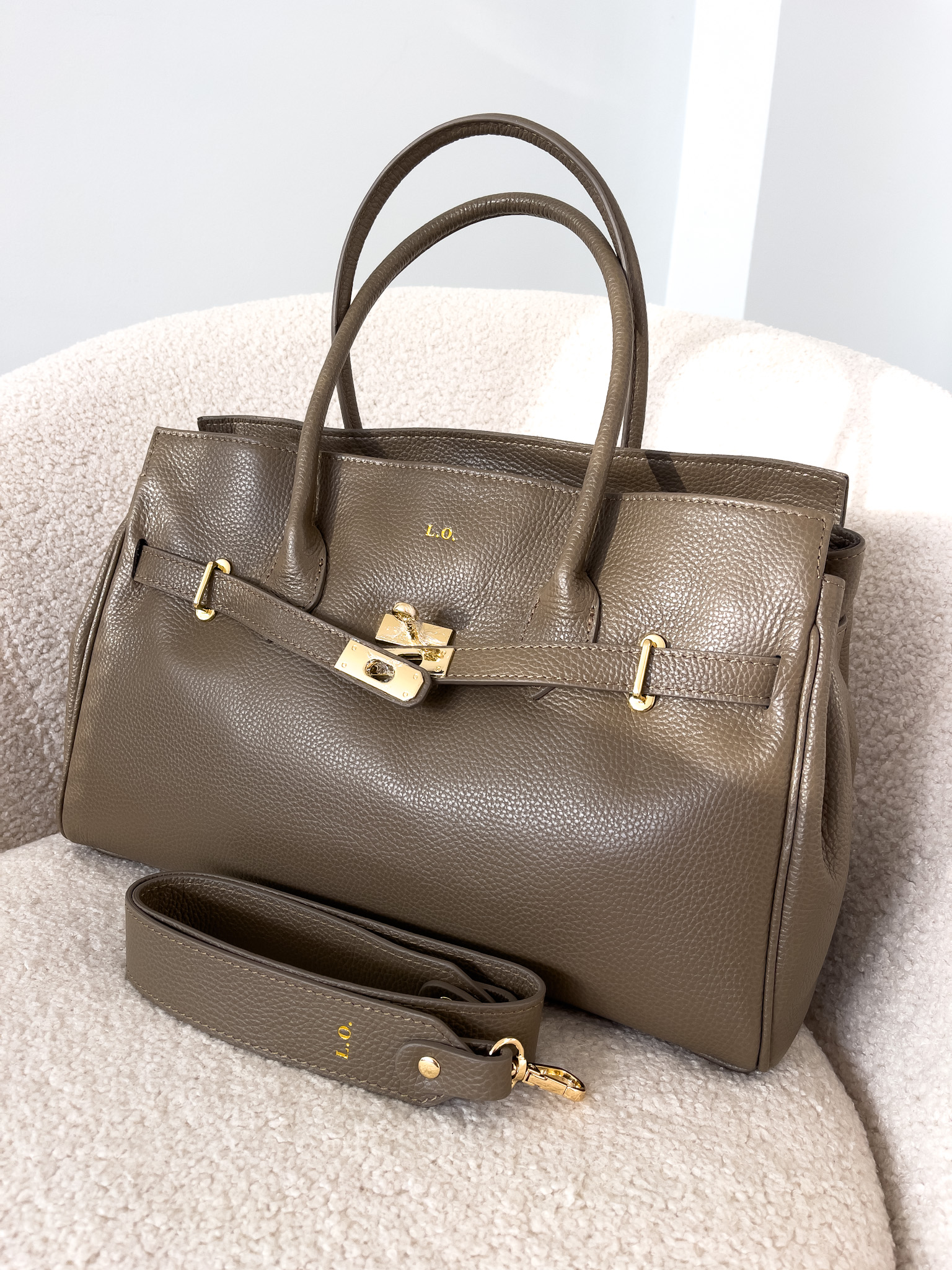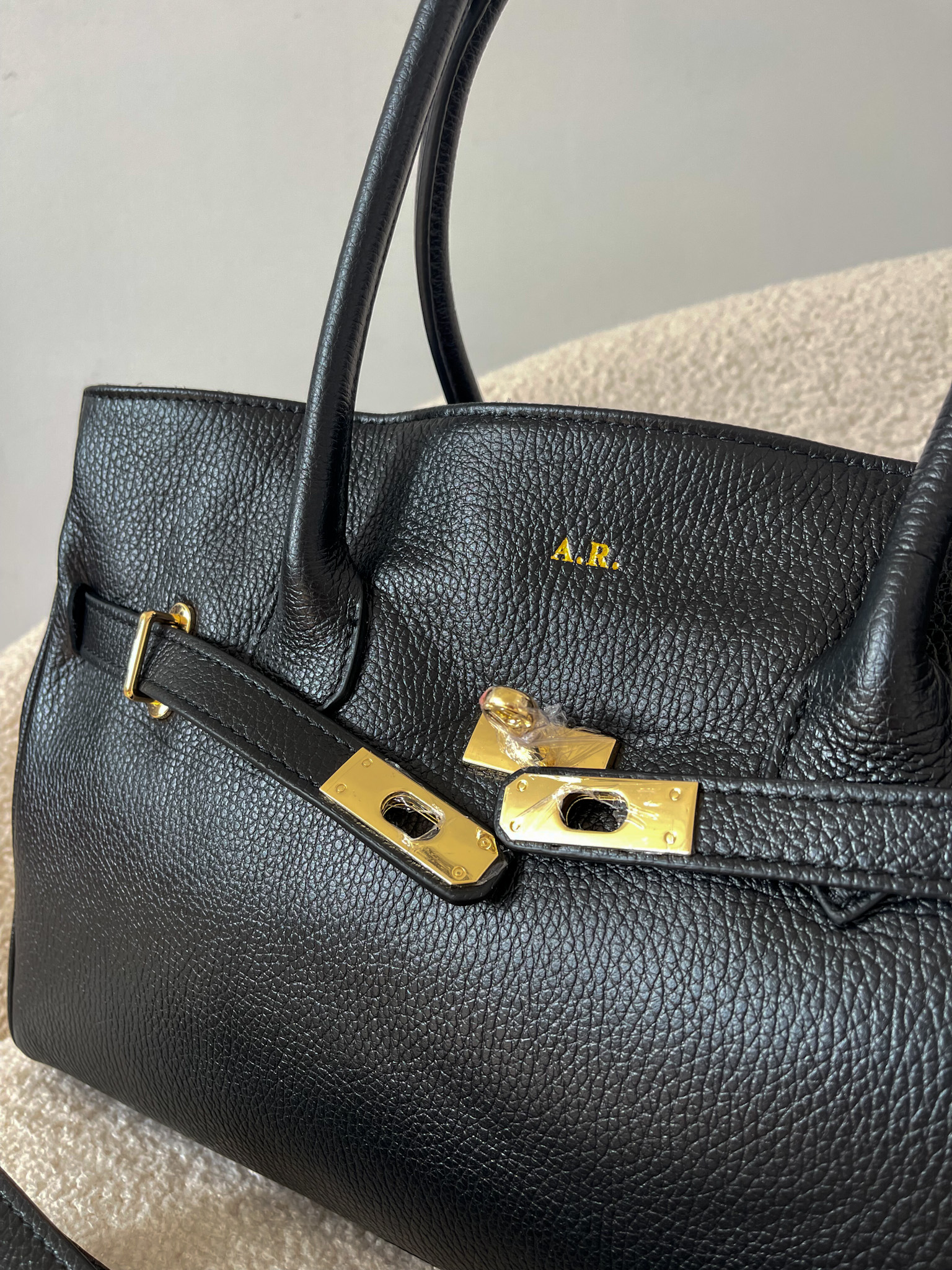 Monogram je zahrnutý v cene, ak si monogram nepraješ, do kolonky MONOGRAM napíš slovo ŽIADNY. Monogram je razený na kabelku aj na kožený popruh. Písmená sú razené horúcou ražbou so zlatou fóliou, vďaka čomu si kabelka zachová čistotu a eleganciu a monogram nebude pôsobiť nijako rušivo, právo naopak, krásne decentne doladí celkový dojem a dodá jej ešte väčšiu výnimočnosť.