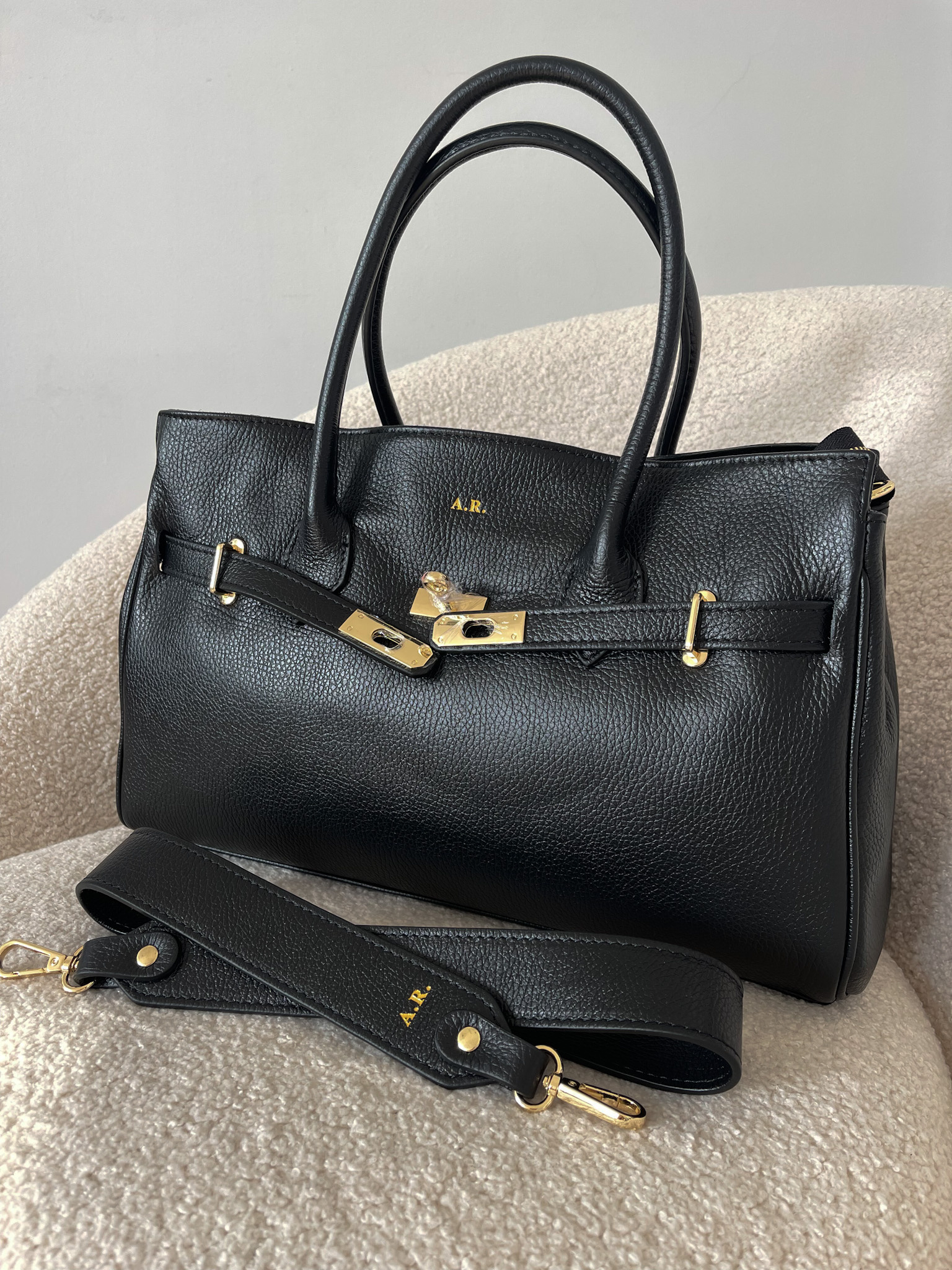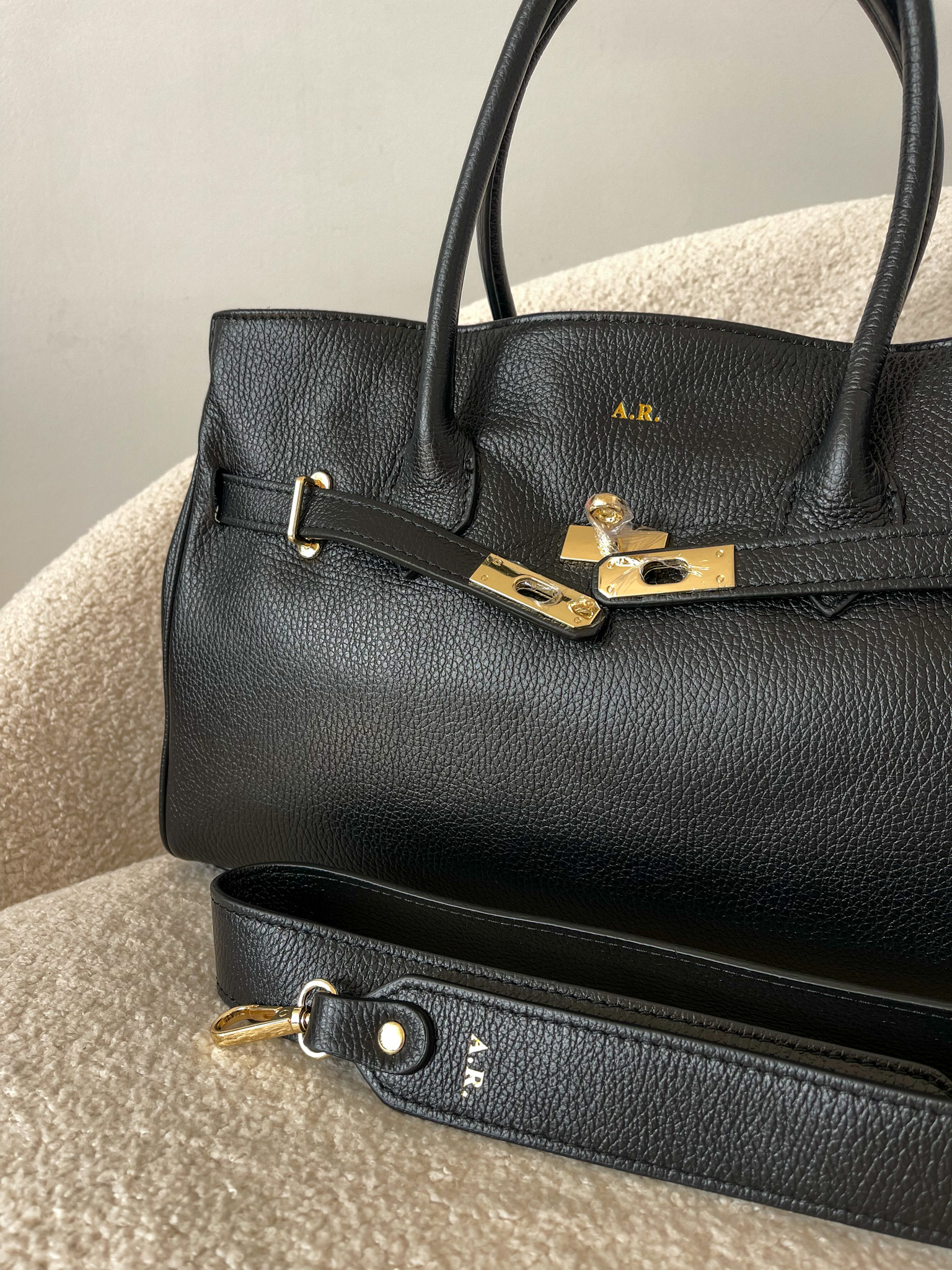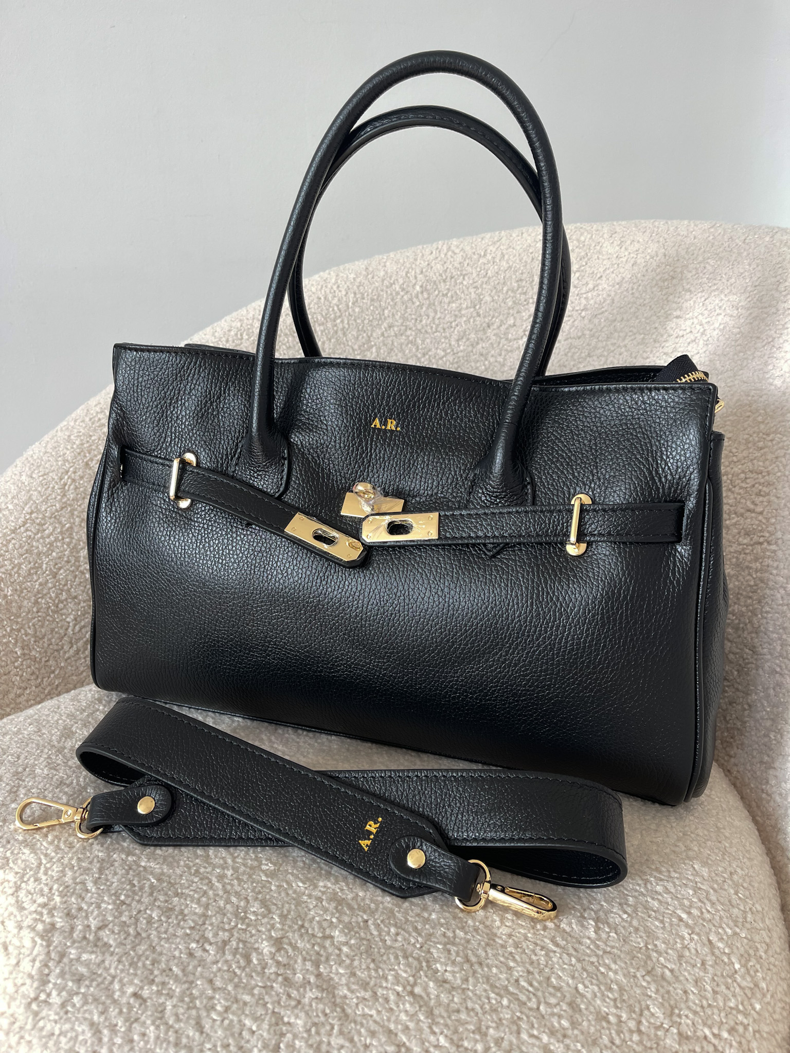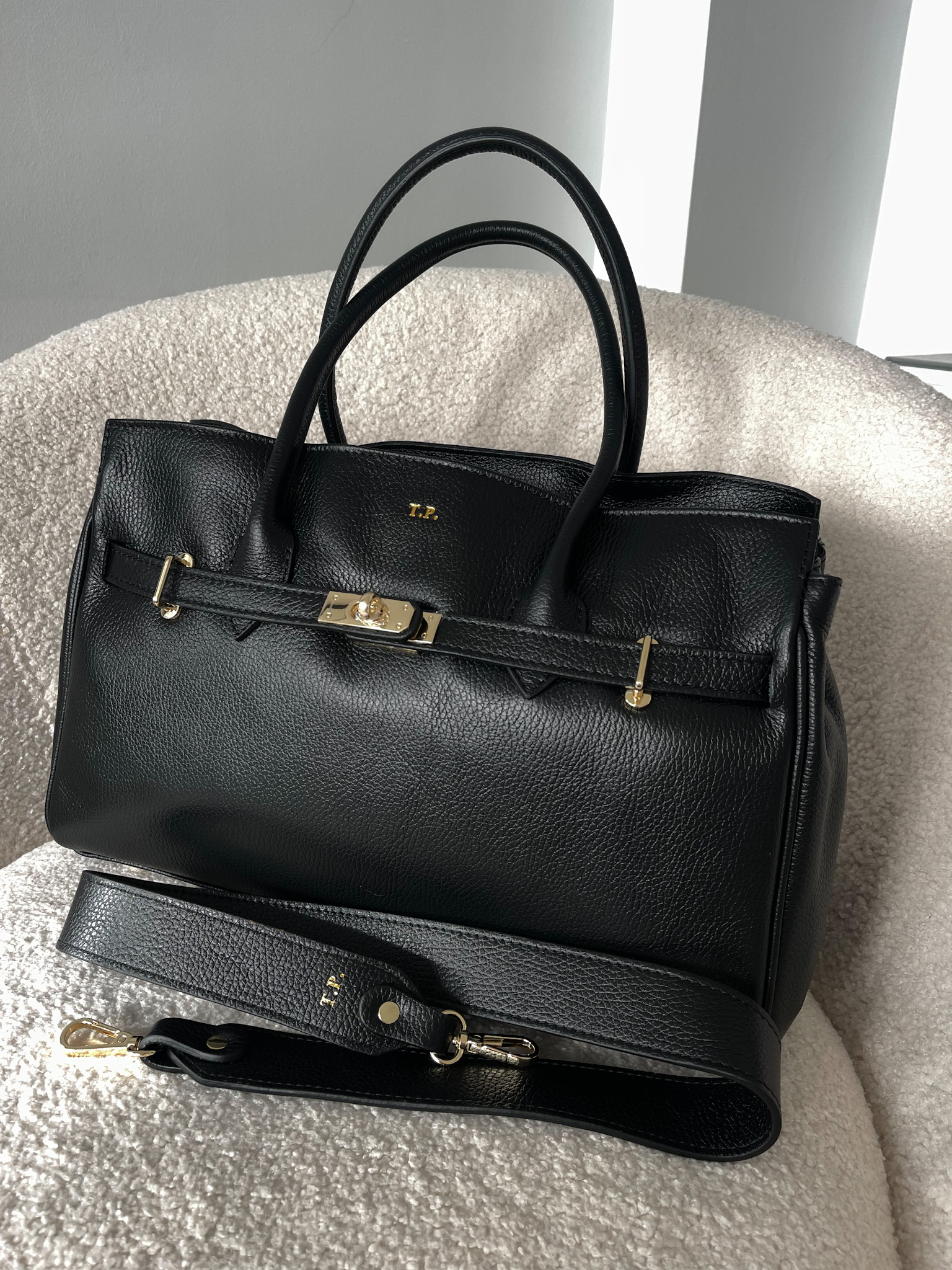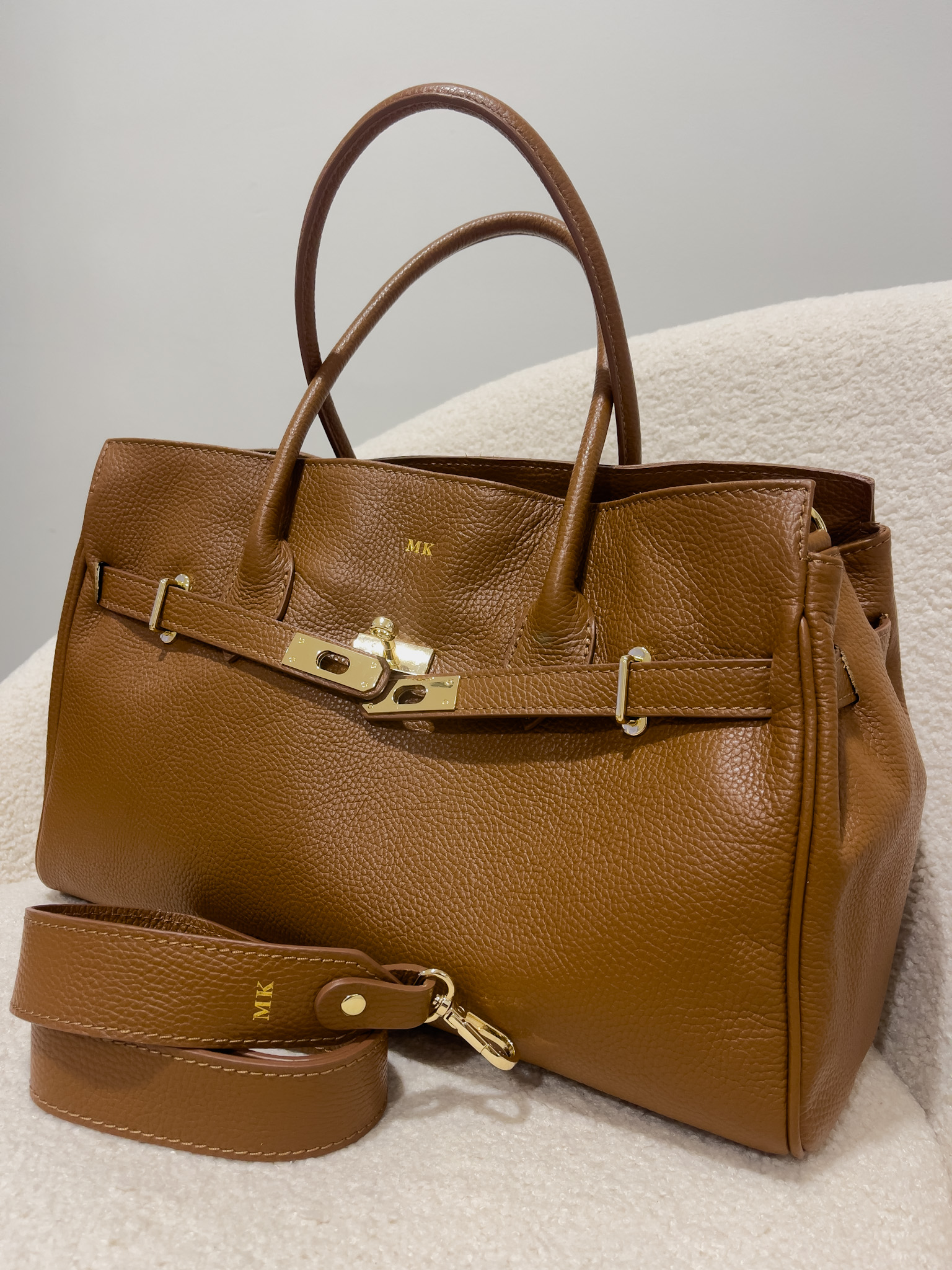 Monogram je zahrnutý v cene, ak si monogram nepraješ, do kolonky MONOGRAM napíš slovo ŽIADNY. Monogram je razený na kabelku aj na kožený popruh. Písmená sú razené horúcou ražbou so zlatou fóliou, vďaka čomu si kabelka zachová čistotu a eleganciu a monogram nebude pôsobiť nijako rušivo, právo naopak, krásne decentne doladí celkový dojem a dodá jej ešte väčšiu výnimočnosť.