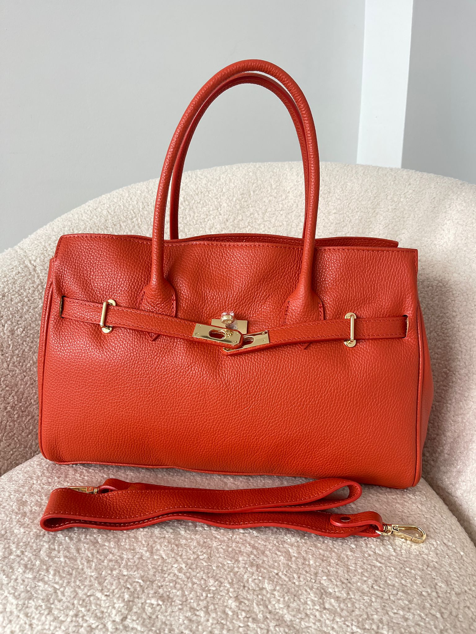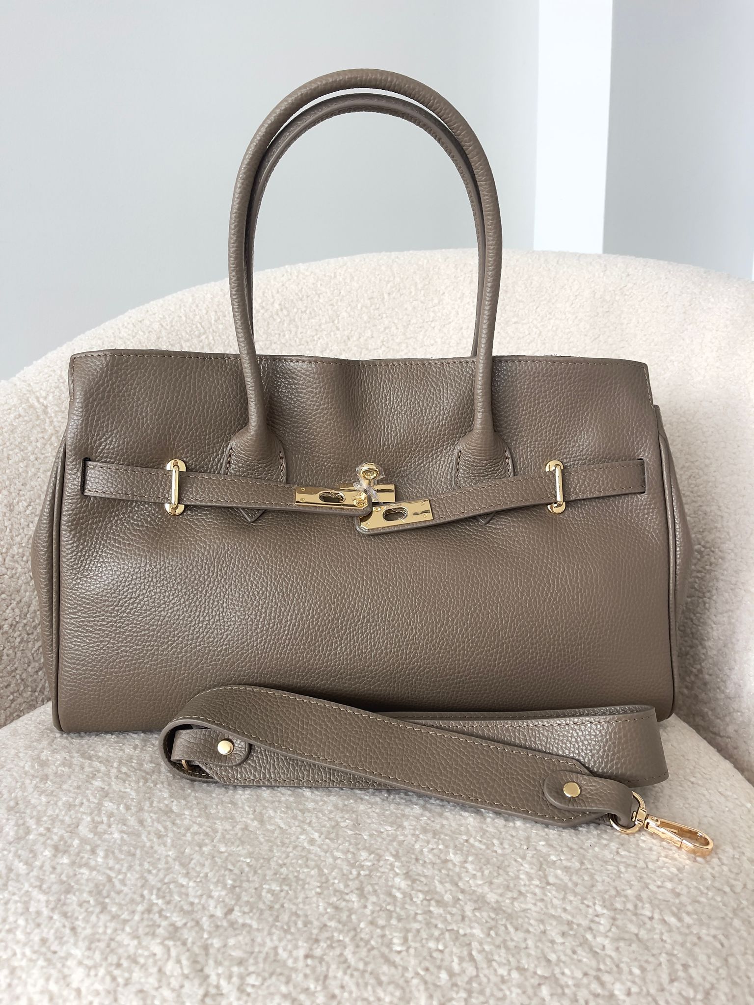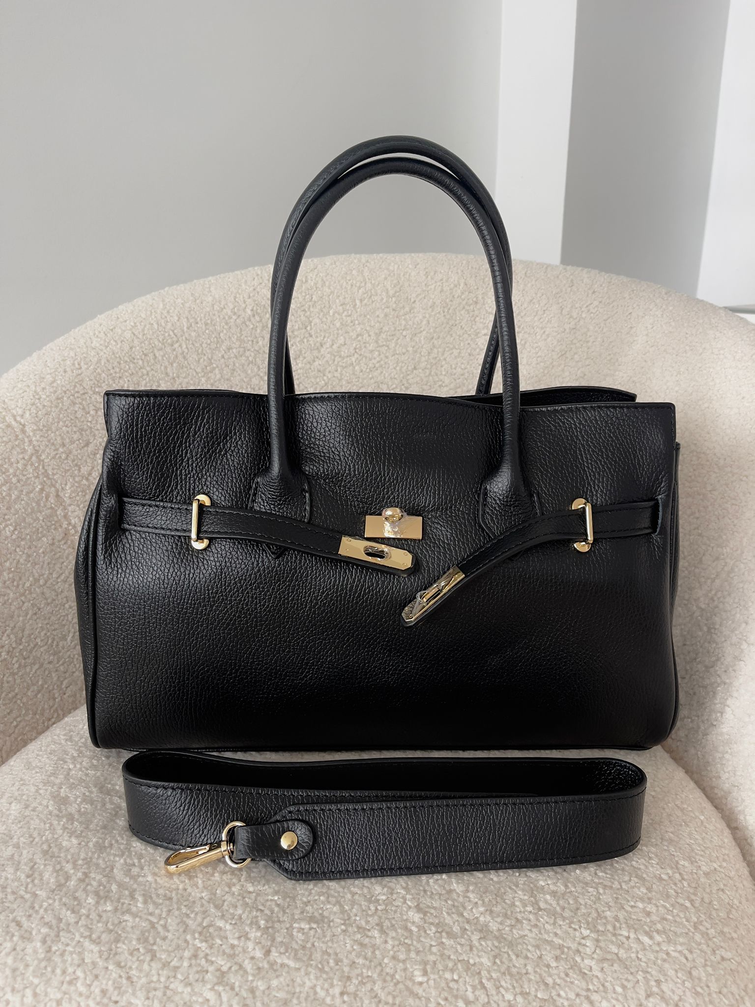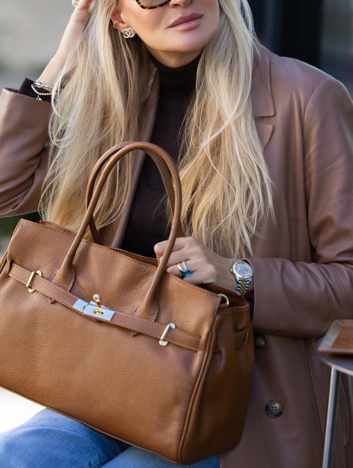 Je vyrobená z prémiovej štruktúrovanej pravej kože s elegantným kovovým zapínaním a čistými líniami, ktoré sa hodia k akémukoľvek outfitu – od kancelárie až po večerný drink.