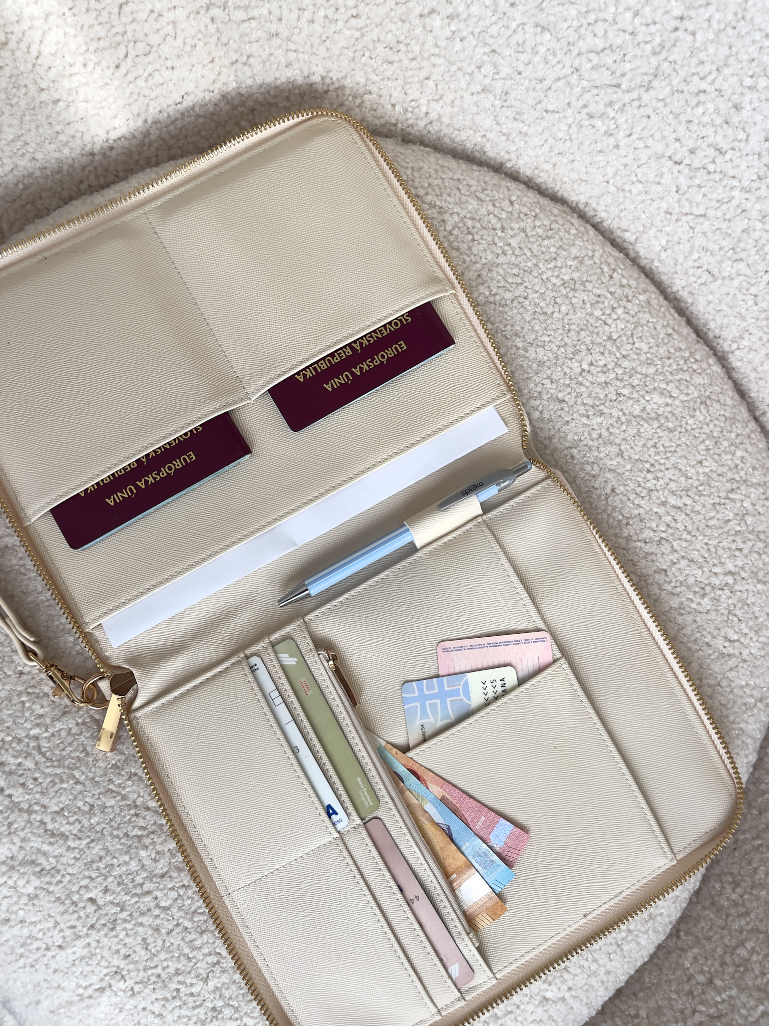✅ Dostatok priestoru – pojme pasy, letenky, karty, doklady aj mobil.