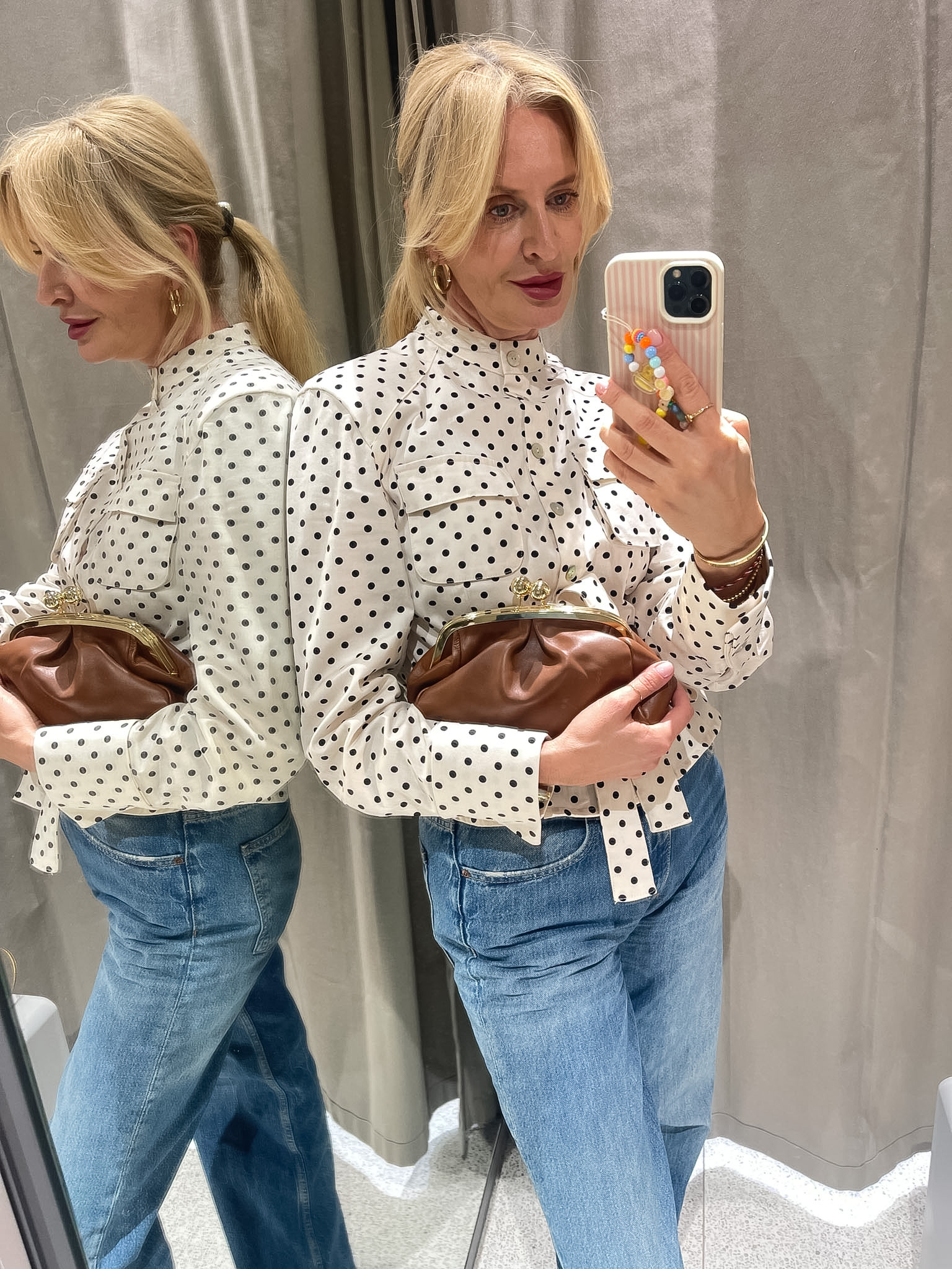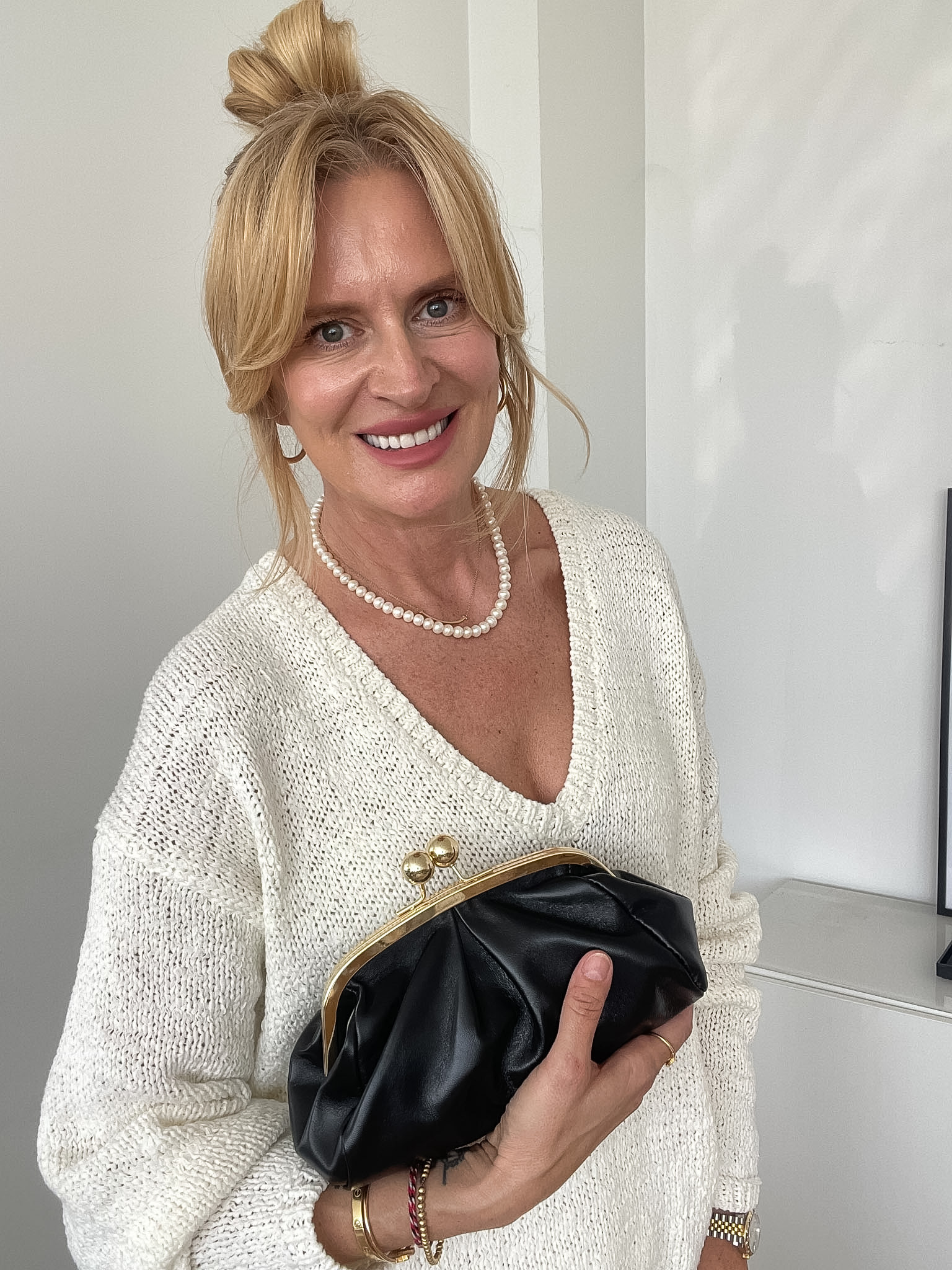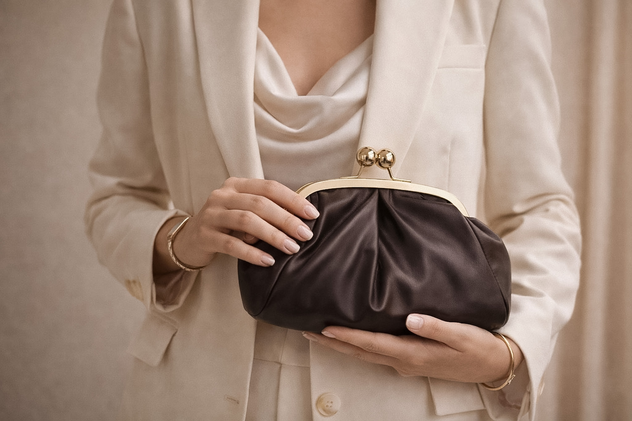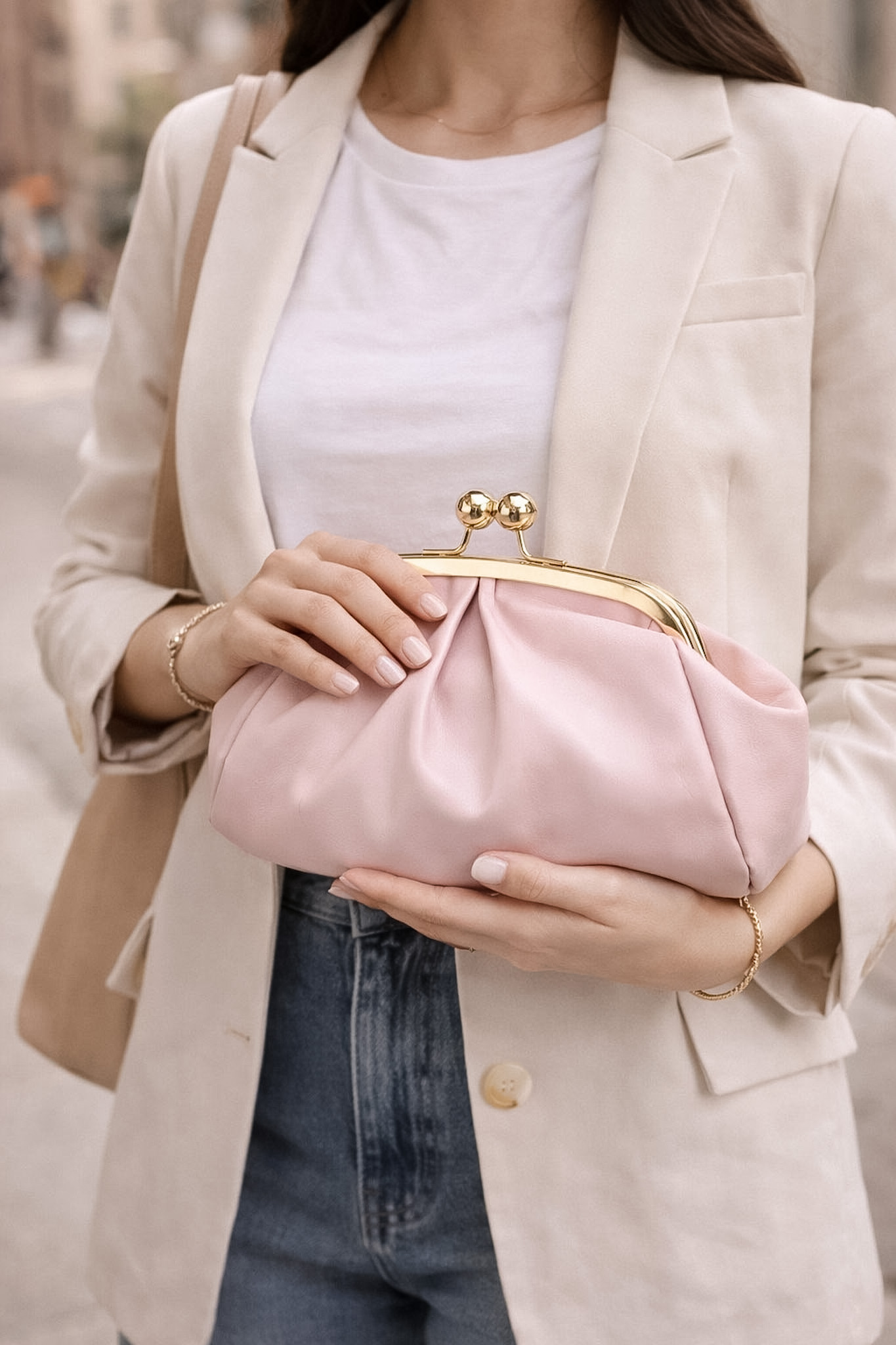 Vďaka priestrannému vnútornému priestoru sa do nej zmestí všetko potrebné – mobil, peňaženka, kľúče, kozmetika aj ďalšie drobnosti. Luxusná zlatá retiazka umožňuje nosenie cez plece, aj ako Crossbody kabelka, takže sa dokonale prispôsobí Tvojmu štýlu a potrebám. Elegantné zapínanie s guličkami z odolného zlatého kovu.