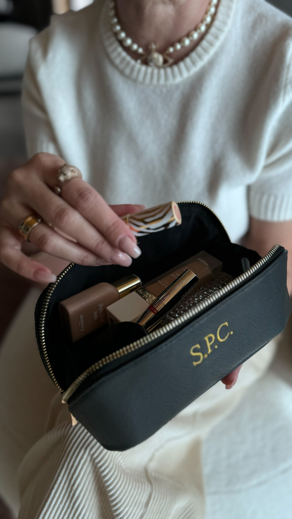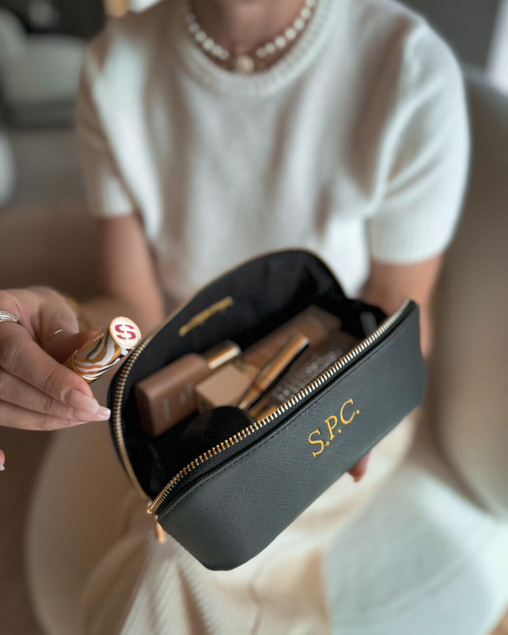 Táto luxusná taštička na make-up je ideálnym doplnkom, ktorý ti poskytne najvyšší komfort pri líčení. Po otvorení zipsu sa taštička pretransformuje na praktickú “tácku”, na ktorej budeš mať všetky potrebné kozmetické pomôcky ihneď po ruke. Vlastný monogram ti dodá osobný nádych a táto taštička sa tak stane jedinečným a štýlovým kúskom v tvojej zbierke.