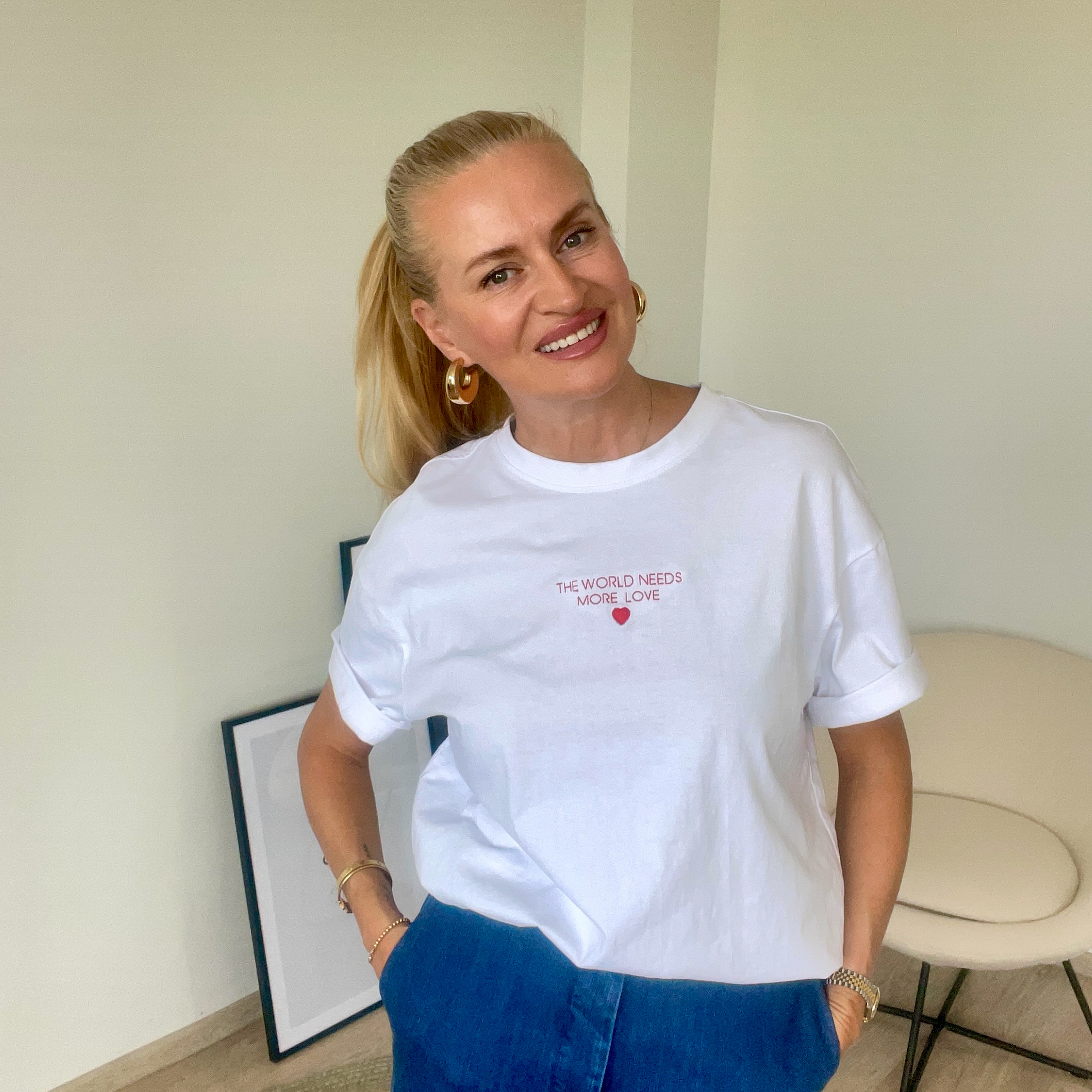 Toto oversize tričko s nápisom „THE WORLD NEEDS MORE LOVE“ je nielen pohodlné, ale aj silným odkazom do sveta, že náš svet potrebuje viac lásky 💖. Tento nápis nás motivuje zamyslieť sa nad tým, čo je v živote naozaj dôležité, a každý deň nás pozýva šíriť lásku všade okolo nás.